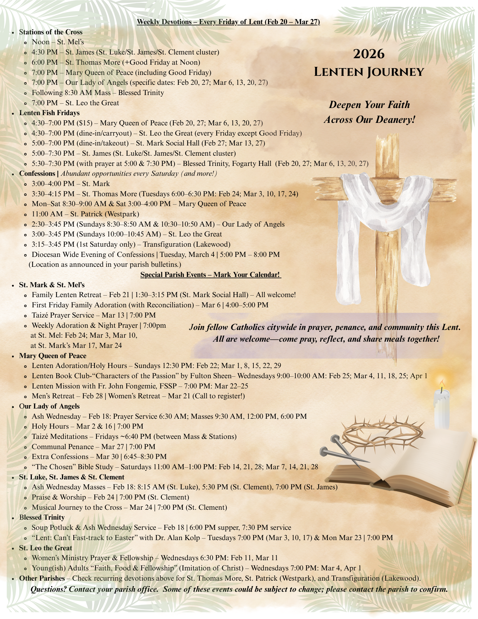 Please Note: There will be NO Thursday Masses from February 19th thru March 19th